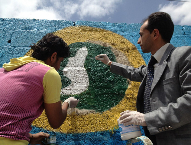 Murals hold the potential to evoke a wide range of emotions in any society. These artistic representations of cultural, social, or economic issues and events can transform communities, as well as deliver universal messages that breach the barriers of culture and language, uniting peoples and promoting dialogue about complex and often over-looked subjects present within society. Once this dialogue has been opened however, they can generate increased awareness of obstacles to equality, justice, or freedom, or even change the views and opinions on these pertinent topics. On September 15, 2012 in the city street of Sana’a, Yemen, WCI-ALWANE, created a vivid mural advocating women’s rights and gender equality.