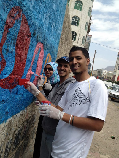 Though painting the mural took just seven hours, it was the result of weeks of planning, with the committee vigorously working to overcome obstacles to artistic as well as female expression within the nation. Difficulties arose when searching for a wall with maximum community member exposure, and even once a suitable spot was found, logistical problems surfaced around the feasibility of preparing and painting the wall itself. In addition to geographic constraints, societal issues also surfaced, as it is unusual for women to stand in the streets for long periods of time. However, the ALWANE Yemen was able to overcome these impediments with grace in order to complete the unique and attention-grabbing mural. When referring to conquering differences to overcome hardships, Hind Ali, a Yemen committee member, felt that “the best part of the project was that a group of young men and women who differ on the individual level could come together to agree on one idea and try to deliver it to others together and in the same way… this represents a microcosm of what actually exists in life.”